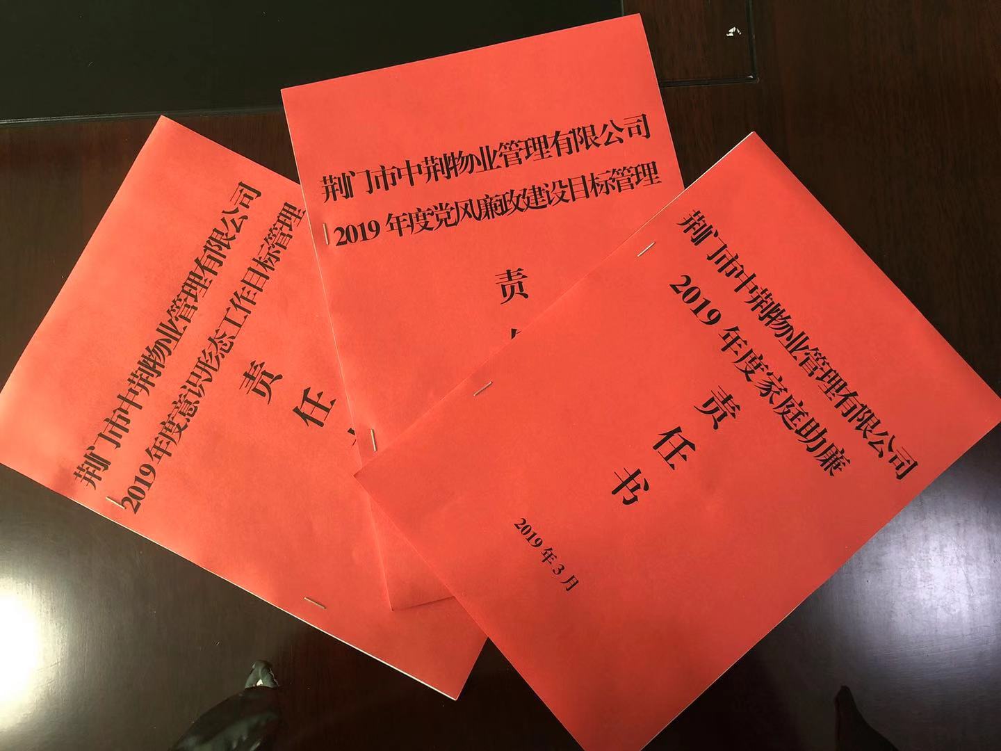 2019年3月14日,市中荊物業(yè)管理有限公司黨總支與公司各黨支部、部室、領(lǐng)導(dǎo)成員簽訂了《2019年度黨風(fēng)廉政建設(shè)目標(biāo)管理責(zé)任書》、《2019年度意識形態(tài)責(zé)任書》、《2019年度家庭助廉責(zé)任書》,各類責(zé)任書的簽訂,進一步明確了各項工作中的職責(zé),把責(zé)任扛在肩上。為我公司2019年各類工作任務(wù)的落實起到了保障作用。