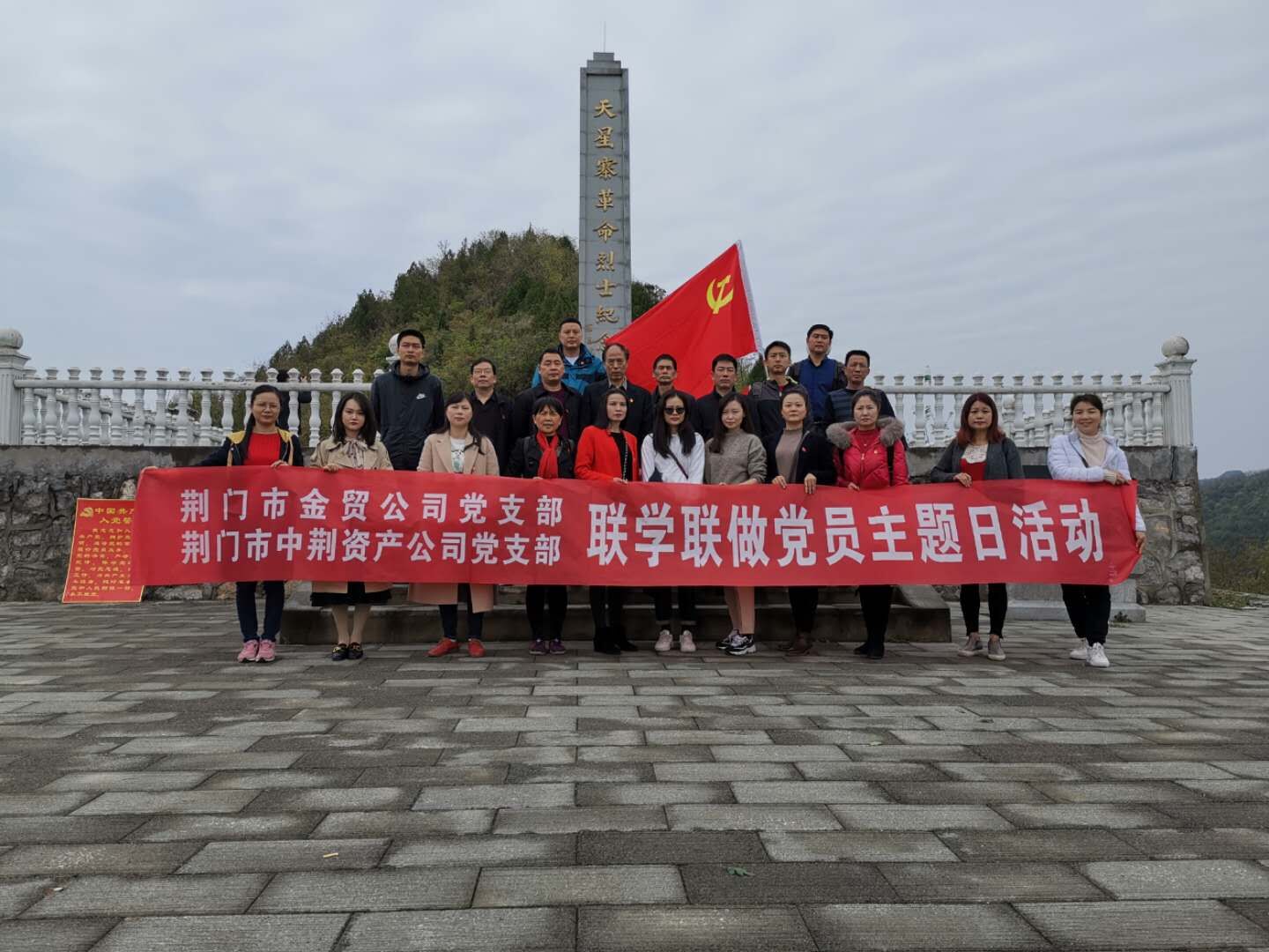 2019年4月3日(星期三)上午,市中荊資產公司機關支部、市金貿公司機關支部組織全體黨員在荊門市仙居鄉(xiāng)天星寨革命烈士紀念碑聯合開展了2019年4月份聯學聯做主題黨日活動。該活動以“學習貫徹全國‘兩會’精神、開展國家安全專題學習、學習‘共產黨員不準信仰宗教’及開展形式多樣的革命傳統(tǒng)教育”等為主題的2019年第4個“黨員主題活動日”學習大會。